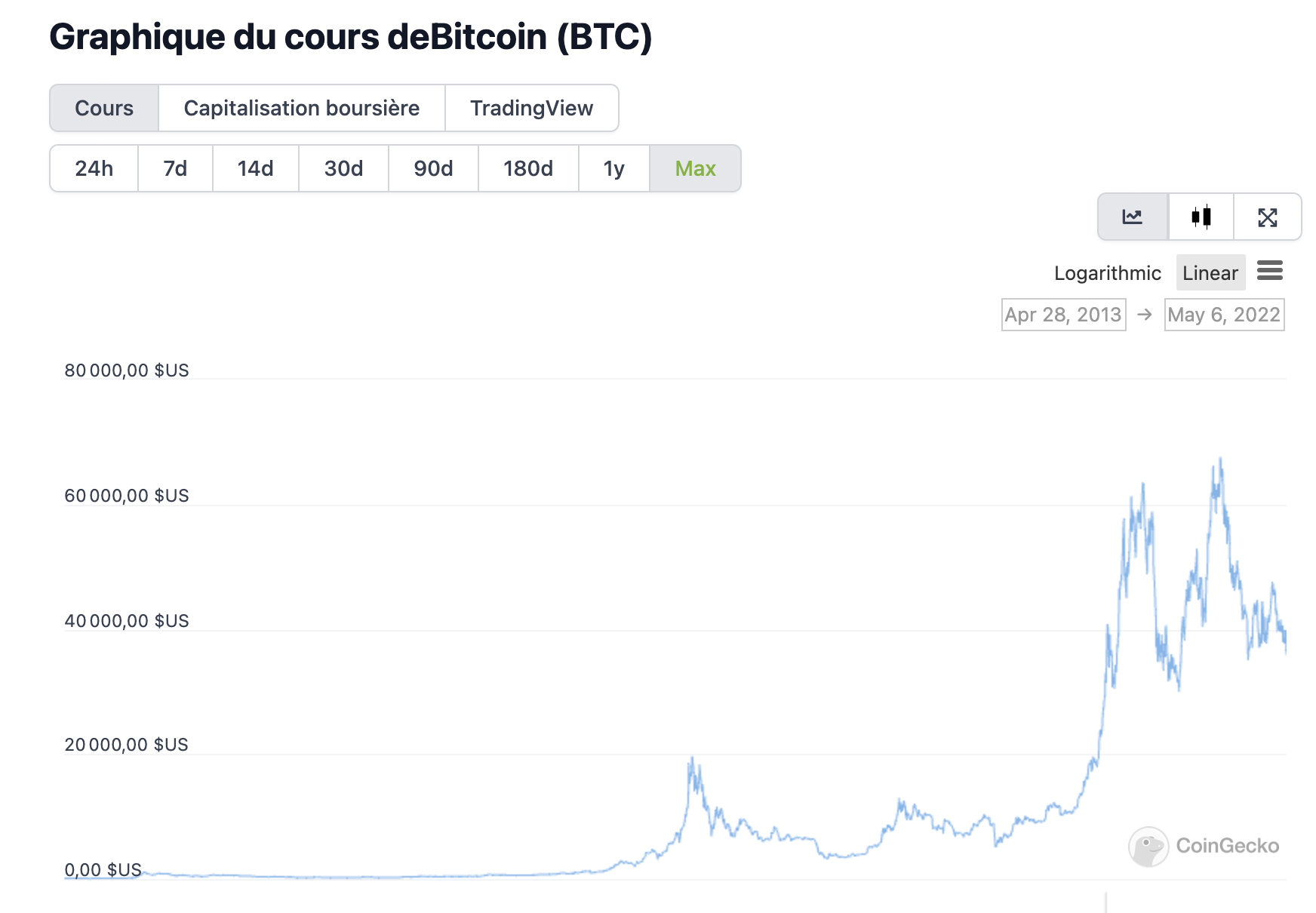 Certains investisseurs peuvent être en désaccord avec cette affirmation, mais les données jusqu’à présent sont claires : l’indice des prix à la consommation a augmenté d’environ 30 % au cours de la dernière décennie, ce qui signifie que le dollar américain vaut moins aujourd’hui qu’il y a 10 ans. Mais la valeur du bitcoin s’est apprécie de 99,996 % par rapport au dollar, selon Bloomberg, ce qui signifie qu’il vaut beaucoup plus.