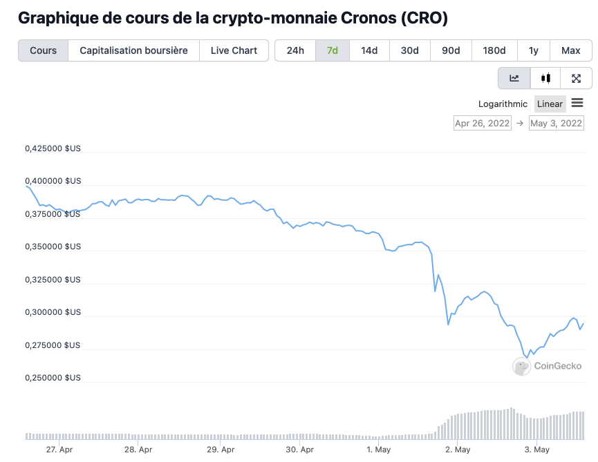 Le jeton CRO se négocie actuellement à environ 0,29 $ par pièce, soit une baisse de près de 70 % par rapport à son prix record de novembre.