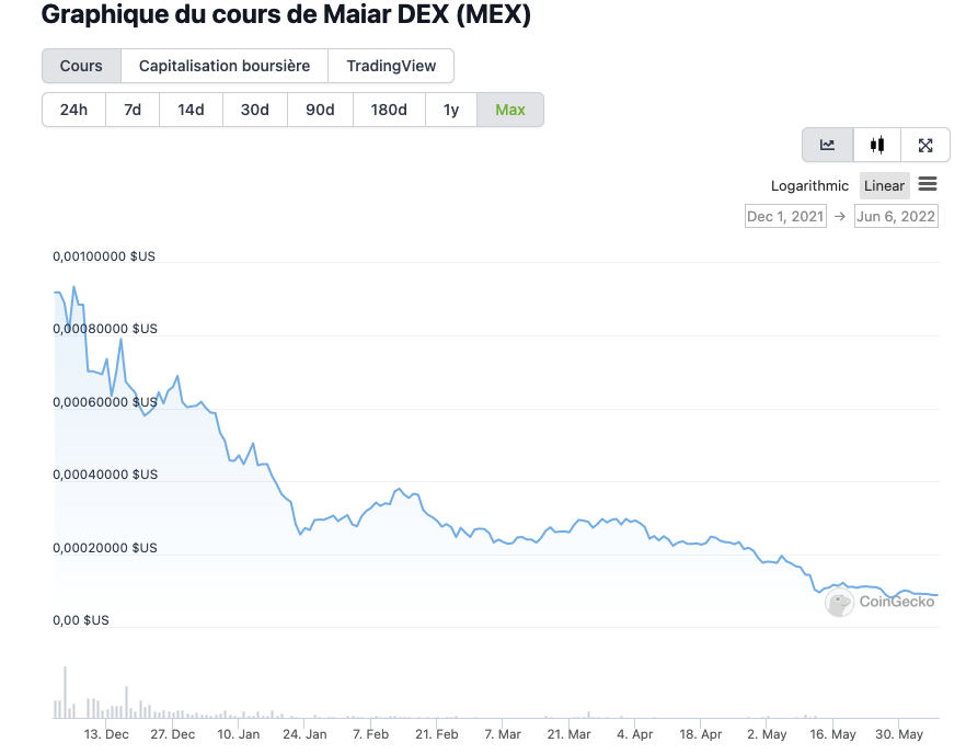 Lancé à la fin de l’année dernière, Maiar a coïncidé avec un programme d’incitation à la liquidité totalisant 1,29 milliard de dollars en jetons MEX dans le but de stimuler l’activité sur le nouveau marché. Les contrats intelligents construits pour Maiar et déployés sur Elrond ont été présentés au moment du lancement comme ayant subi « un audit rigoureux et une vérification formelle« .