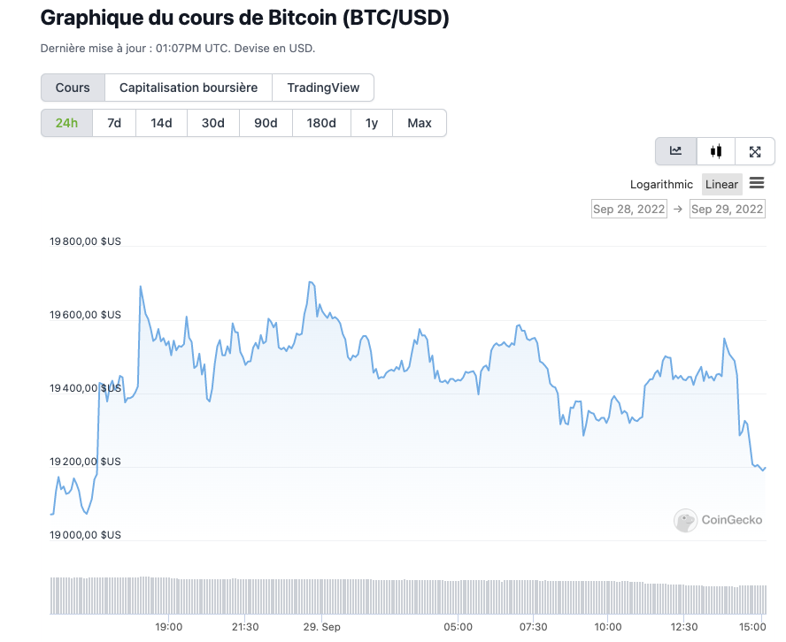 La journée s’annonce encore une fois très mauvaise dans le monde des crypto-monnaies. La plupart des principaux jetons étaient orientés à la baisse, avec en tête le bitcoin (BTC 0,44 %), qui avait perdu 5,3 % au cours des 24 dernières heures.