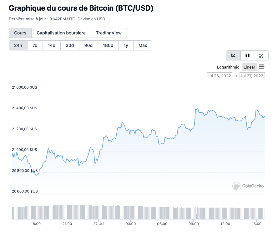 Le Bitcoin se négociait en légère hausse mercredi, les marchés anticipant la réunion du FOMC (Federal Open Market Committee) d’aujourd’hui. La plus grande crypto-monnaie du monde est tombée à un plus bas intraday de 20 776,82 $ mardi, cependant l’actif a quelque peu rebondi aujourd’hui.