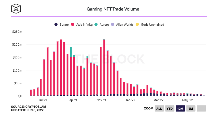 Axie, le chouchou du monde du P2E, a connu une montée en popularité fulgurante au cours de l’été et au début de l’automne 2021. À son apogée, le jeu a accumulé plus de 215 millions de dollars au cours de la semaine du 8 août 2021. En octobre de la même année, Sky Mavis, le créateur d’Axie, avait même atteint une valorisation de 3 milliards de dollars après un tour de table de 152 millions de dollars.
