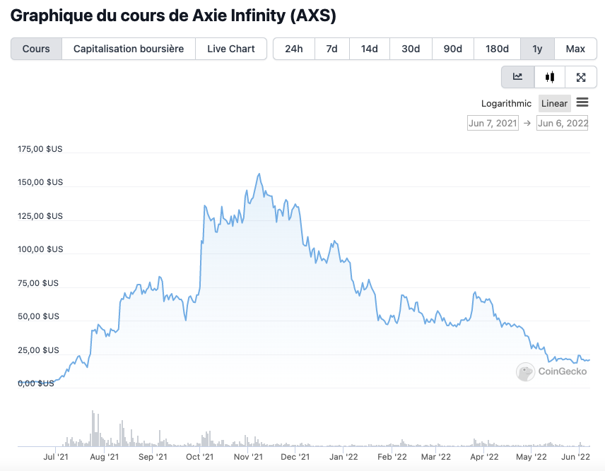 Une trop grande quantité du jeton d’Axie, Smooth Love Potion (SLP), a été émise sans qu’il soit possible de détruire ou de brûler le jeton. Cela a conduit à une inflation qui a fait perdre de la valeur au jeton, dissuadant les joueurs de continuer à utiliser le jeu. Sky Mavis a tenté d’introduire davantage de mécanismes de combustion dans le jeu, mais cela ne semble pas avoir eu les effets escomptés. LE jeton AXS continu lui aussi de chuter vers les 20$, soit très loin des 150$ du mois de novembre dernier.