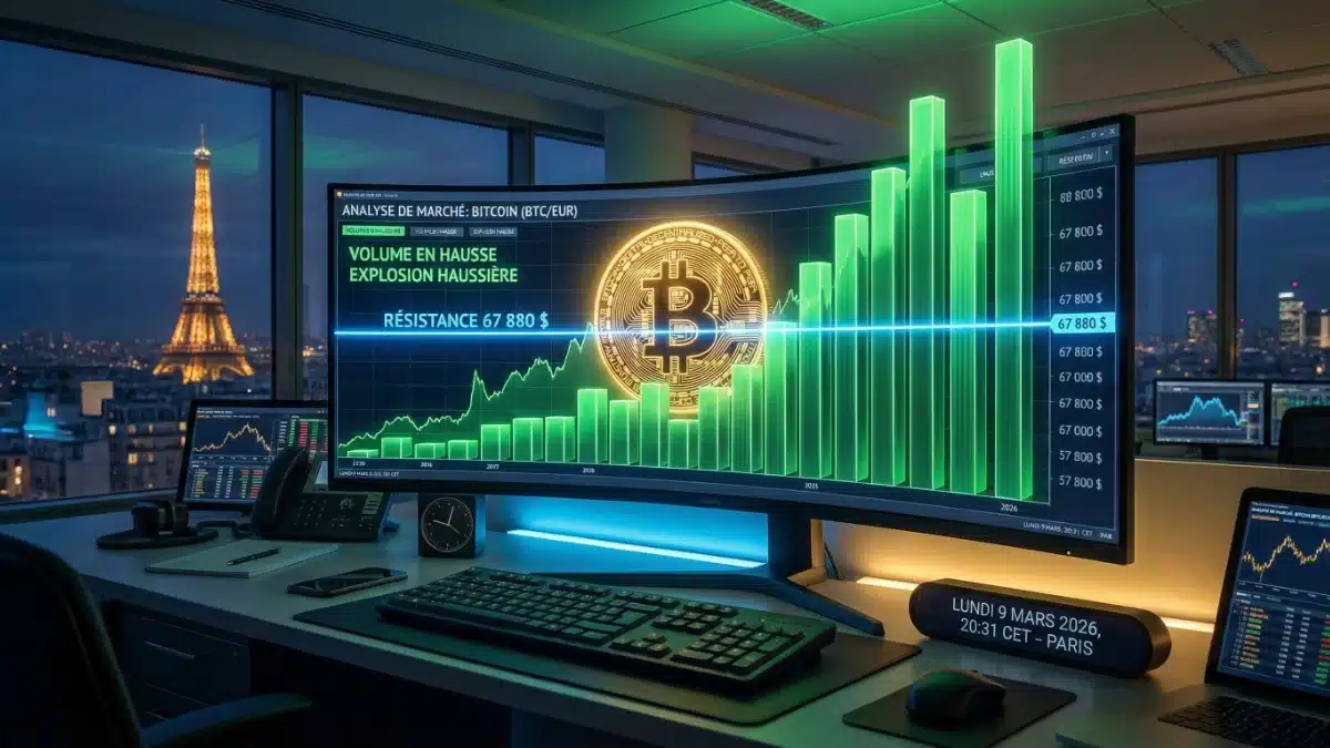 Le week-end de léthargie s’achève définitivement pour les marchés financiers ce lundi 9 mars 2026. Le cours Bitcoin s’offre un réveil brutal. Le roi des cryptomonnaies bondit vers les 69 000 dollars. L’encéphalogramme plat de la veille laisse place au retour fracassant des capitaux institutionnels. Décryptage complet d’une entame de semaine explosive pour le Bitcoin.