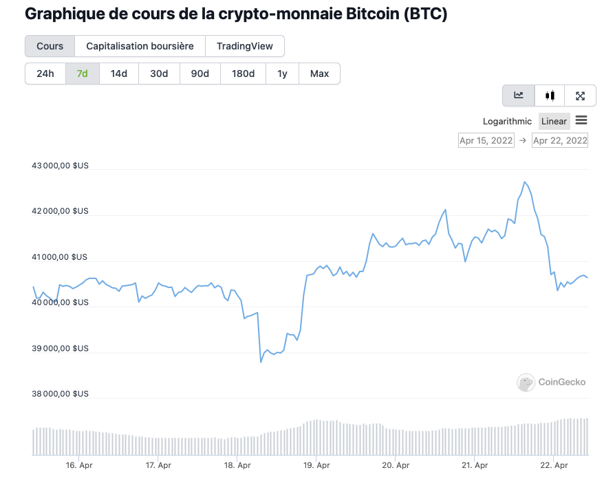 Le prix du bitcoin a dépassé le niveau critique de 42 000 dollars le 21 avril, alors que l’actif continue de grimper progressivement au-dessus des niveaux de résistance après avoir brièvement testé le support sous le seuil de 40 000 dollars quelques jours plus tôt.