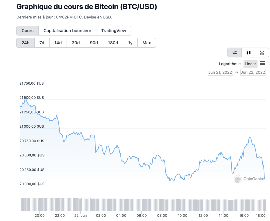 Le Bitcoin chuté à un peu plus de 19 900 $ aujourd’hui, entraînant une perte de 4 % pour les traders au cours des dernières 24 heures et s’ajoutant à une baisse de 7 % au cours de la dernière semaine. Cette baisse est intervenue alors que les analystes de Morgan Stanley (MS) et de Goldman Sachs (GS) ont averti mardi que les risques de récession n’étaient « pas entièrement pris en compte« .
