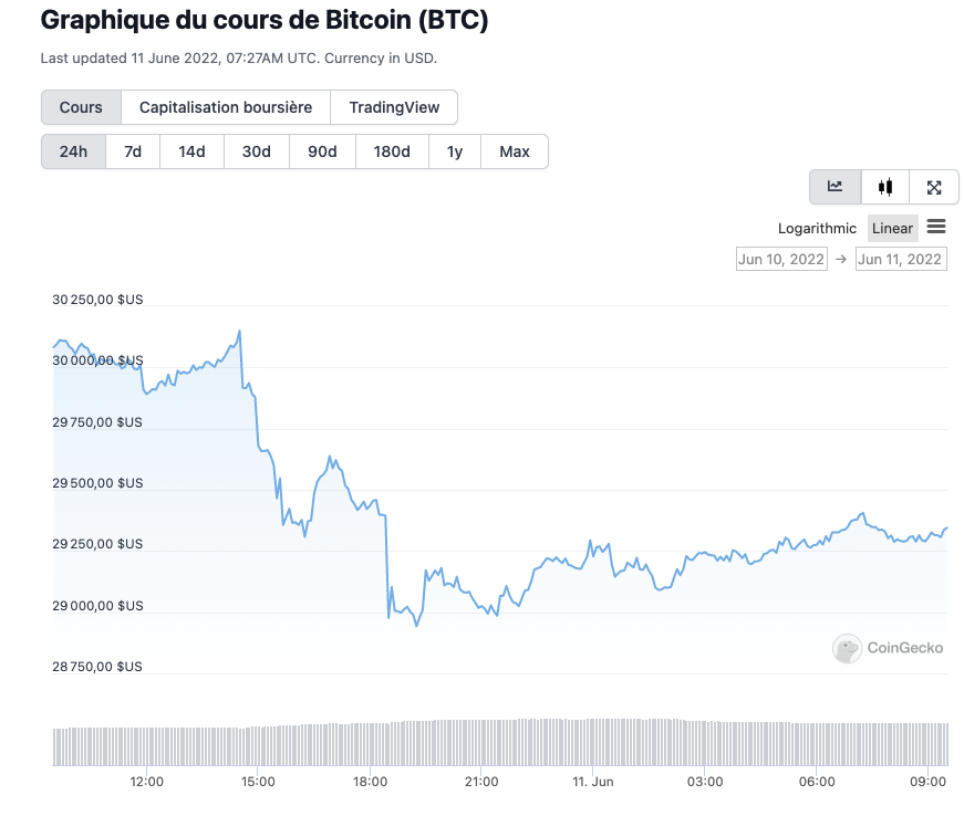 Le bitcoin s’échange désormais sous la barre des 30 000 dollars, avec le potentiel de chuter encore plus important. Le scénario le plus pessimiste prévoit que le jeton pourrait tomber jusqu’à 15 000 $ à court terme.