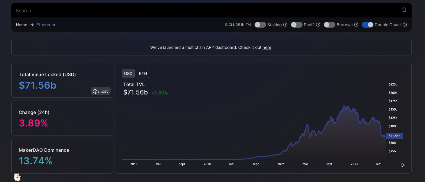 La chute de l’Ethereum est aggravée par une vente massive dans l’espace DeFi. Au cours du mois dernier, les investisseurs ont retiré plus de 40 milliards de dollars des applications basées sur l’ETH, réduisant la valeur totale bloquée (TVL) de plus de 113 milliards de dollars le 5 mai à 71,04 milliards de dollars à ce jour, selon les données de DeFi Llama.