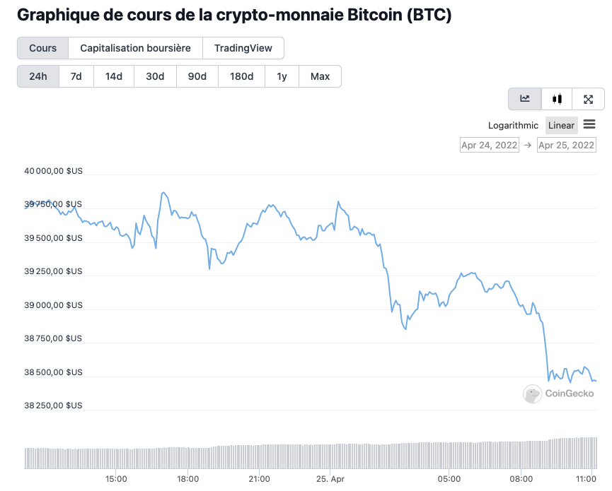 Aujourd’hui, le bitcoin s’échange autour du prix de 38 500 $ et ne donne aucun signe ou signal de retournement.