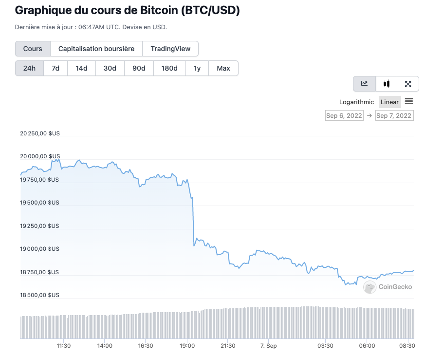 Pour la première fois depuis le 4 juillet, le bitcoin est passé sous la barre des 19 000 dollars.