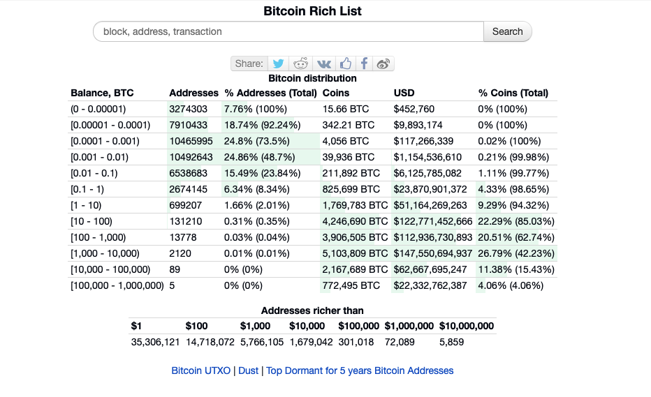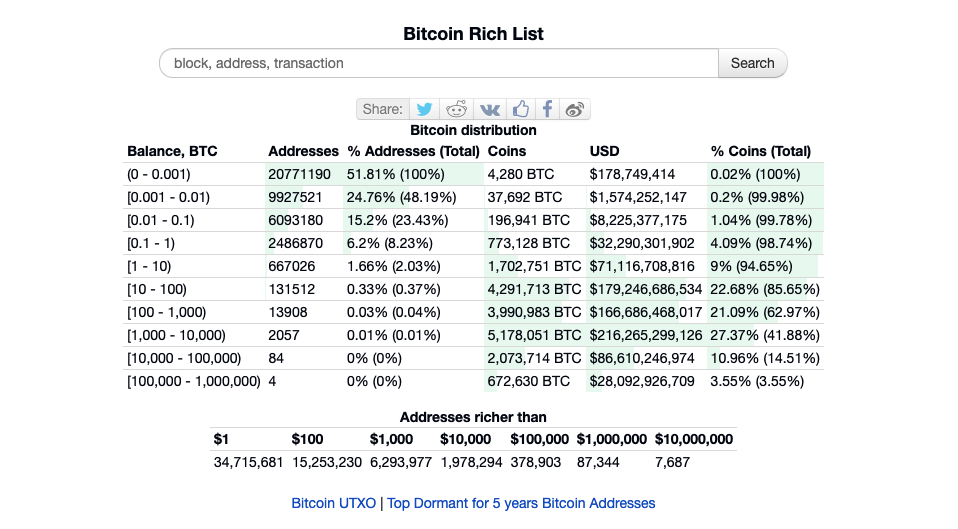 Environ 5 856 de ces adresses avaient un solde combiné d’environ 10 millions de dollars. Les 72 080 adresses restantes ont un solde d’un million de dollars chacune ou plus.