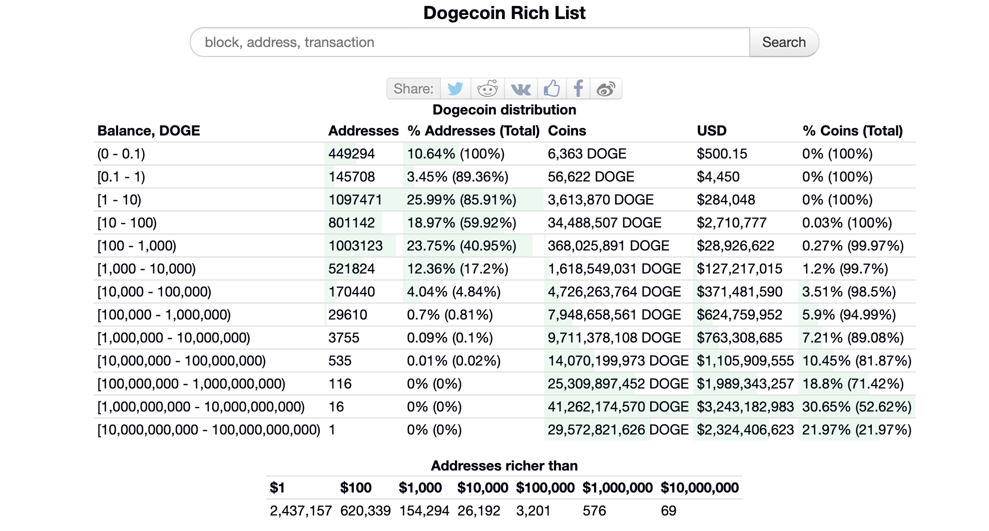 Cela indique que le pourcentage de millionnaires a diminué de 77,45 % depuis que DOGE se négocie près de son sommet.