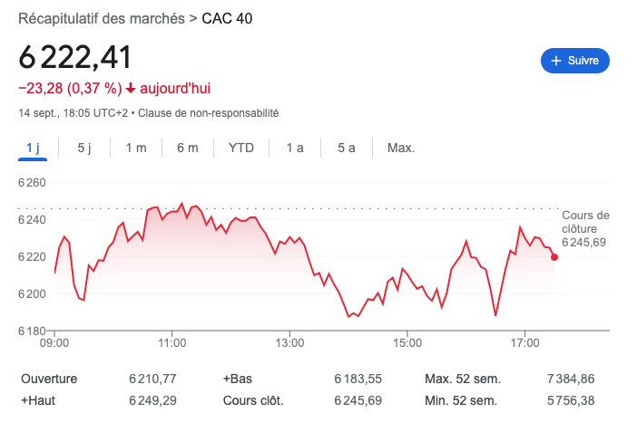 Les actions européennes connaissent un revirement baissier mardi, alors que le Bureau américain des statistiques du travail (BLS) a publié les données clés de l’inflation pour le mois d’août. L’inflation s’étant établie à 8,3 % pour le mois, les investisseurs adoptent une approche conservatrice du marché, sortant leurs positions dans l’espoir de ne pas se retrouver dans le collimateur d’un durcissement monétaire.