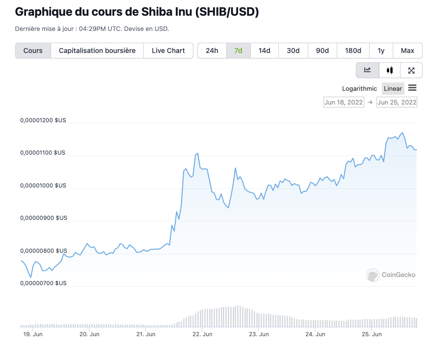 En regardant le graphique, le rallye d’aujourd’hui a vu les prix se rapprocher du sommet de cette semaine de 0,00001209 $, qui est le plus haut que le jeton ait atteint depuis le 31 mai.