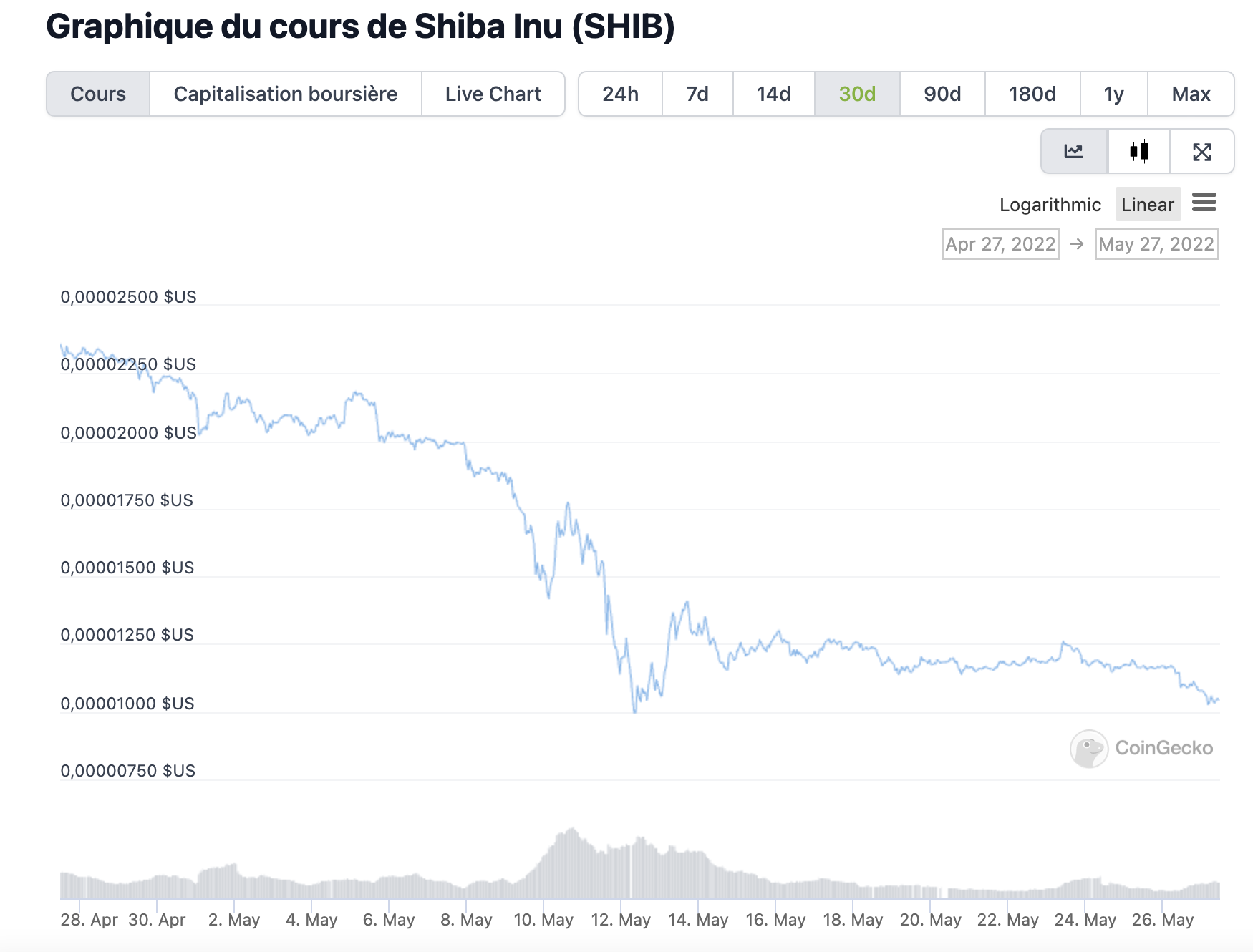 La crypto-monnaie a ajouté plus de 30 000 détenteurs en un mois, alors même que son prix plonge. Selon les données du marché, le prix de SHIB a chuté de 55 % au cours des 30 derniers jours, car il a été affecté par une liquidation plus large du marché des crypto-monnaies exacerbée par l’effondrement de l’écosystème Terra.