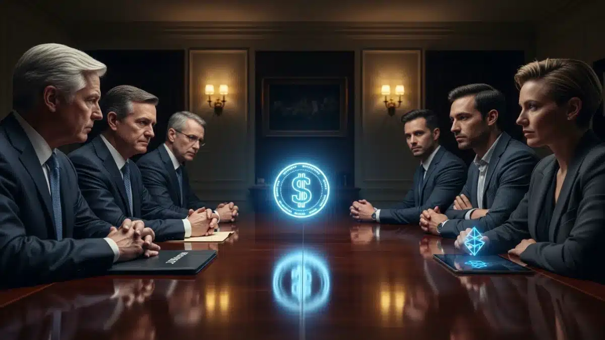 La réunion à huis clos a opposé les poids lourds de la finance traditionnelle (JPMorgan, Goldman Sachs) aux leaders de l’industrie crypto (Coinbase, Ripple, Paxos).